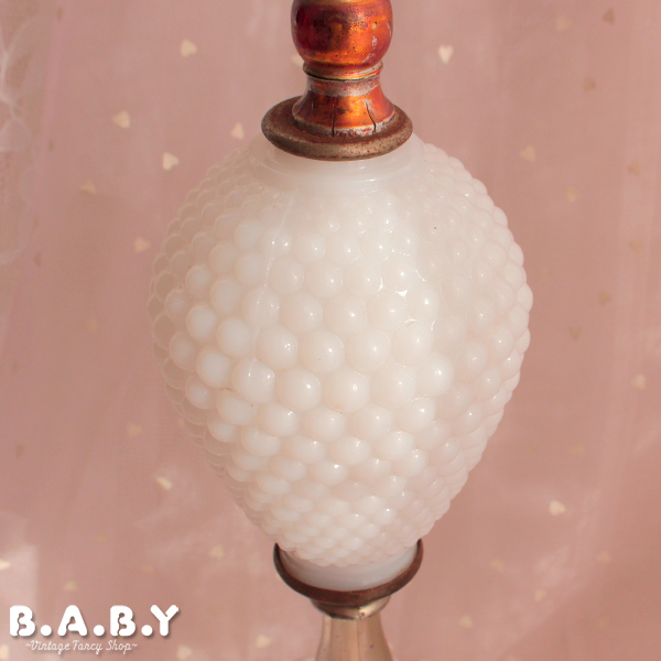 ▶︎ミルクガラス部分:製造過程で入った取れない小さなゴミ、ヒビワレに似た線(ヒビが入っているわけではなく、ひっかき傷に汚れが入りこみ黒くなった→ヒビが入ったように見える、という難です)(写真6.7枚目)