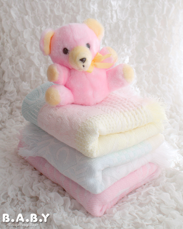 ベビーな色合いとクマちゃんがかわいらしいアフガンブランケットです。