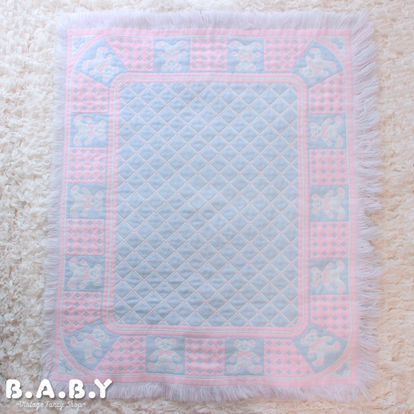 ベビーな色合いとクマちゃんがかわいらしいアフガンブランケットです。