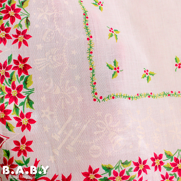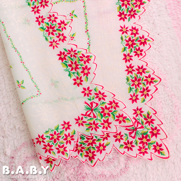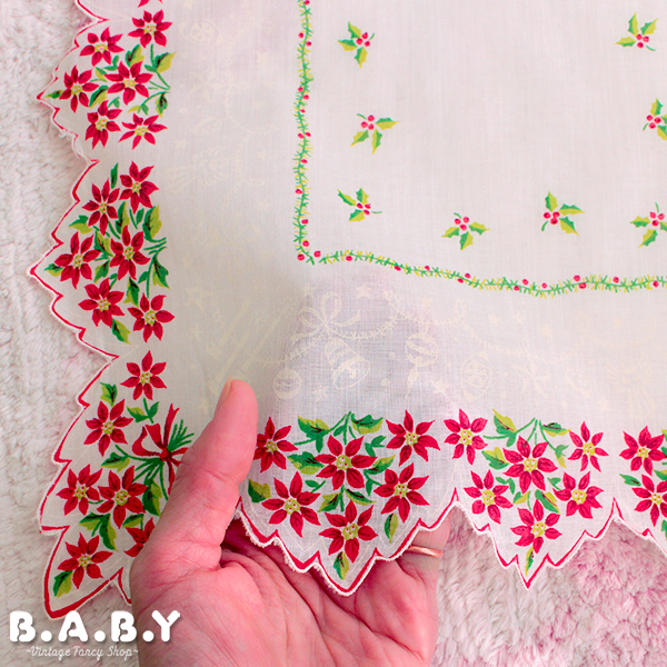 Christmas Cotton Hanky / Scallop Holly Poinsettia